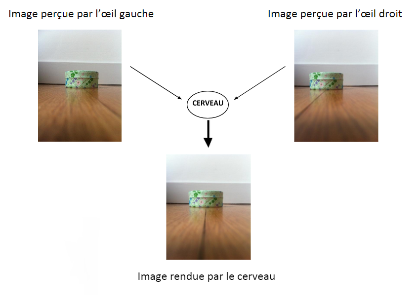 La rétine qui se trouve dans le fond de l’œil est en deux dimensions (largeur, hauteur) alors que le monde tel qu’il nous apparaît est en trois dimensions (largeur, hauteur, profondeur). Ainsi, il manquerait une dimension à l'image qui se forme sur la rétine : la profondeur. Dans cette partie nous allons étudier comment l’association entre les yeux et le cerveau permet de retrouver cette troisième dimension. On peut également se demander comment, à l’aide de nos deux yeux et de notre cerveau, nous arrivons à percevoir les distances et le relief des objets qui nous entourent.