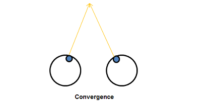 Pour que les images que nous percevons ne soient pas dédoublées, notre cerveau commande l'orientation des deux yeux afin de diriger leurs axes visuels sur le point observé. Ainsi, il peut fusionner les deux images. La convergence binoculaire est un effort exercé par nos deux yeux, effectué grâce à une contraction des muscles extrinsèques de l’œil (muscles externes de l'œil) ainsi que des muscles ciliaires (muscle de très petite taille, dans l'œil). L'intensité de cet effort nous renseigne sur la distance du point observé. Ainsi, nous percevons le relief. L’image de l'objet observé est amenée sur la fovéa. C'est la zone de la rétine qui est composée de l'acuité maximale de l'œil. La convergence binoculaire n’est efficace que sur une dizaine de mètres, car lorsqu’un objet est plus éloigné, les axes visuels sont quasiment parallèles.