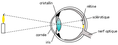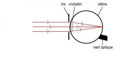 Lorsque l’on regarde un objet ou une image, les rayons lumineux de celui-ci traverse la lentille qui les dévie afin de les focaliser sur la rétine.