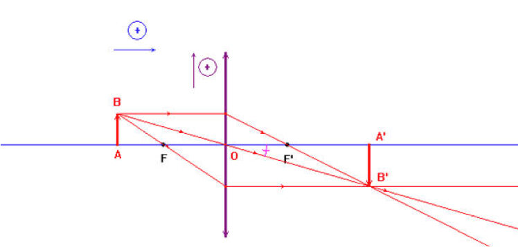 Un rayon incident parallèle à l'axe optique Δ sort d'une lentille en passant par un point F',appelé foyer image.