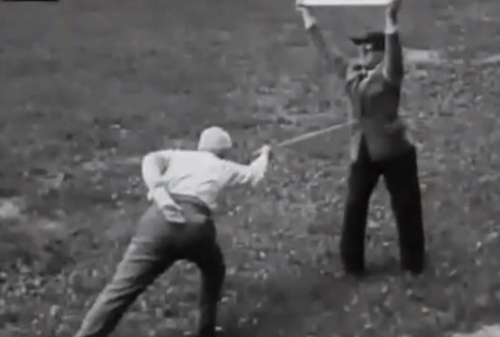 Pour l’aider à s’adapter, le Pr Erismann l’entraine à travers divers exercices afin de l’adapter à sa nouvelle latéralisation. Pour cela, Kohler, tient une planche entre ses mains. Le Pr Erismann l’attaque à l’aide d’une épée en bois. Lorsque Erismann brandit l’épée vers le haut, Kohler se protège en abaissant la planche vers le bas et inversement.